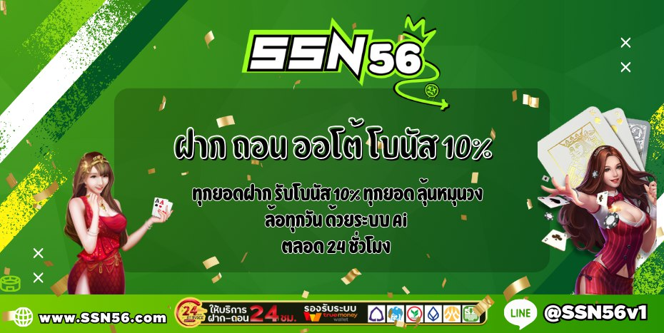 SSN56 เว็บพนันออนไลน์ที่ครบวงจร รวมทั้งคาสิโน กีฬา สล็อต และเกมพนันยอดนิยมมากมาย พร้อมระบบฝาก-ถอนอัตโนมัติทำรายการไว ให้บริการตลอด 24 ชั่วโมง มาพร้อมโปรโมชั่นเด็ดๆ มากมาย ทั้งโบนัสต้อนรับสมาชิกใหม่ และโบนัสเติมเงิน เล่นง่ายผ่านมือถือ รองรับทั้ง iOS และ Android ด้วยระบบที่มั่นคง ปลอดภัย พร้อมทีมงานดูแล 24 ชม. เริ่มต้นเดิมพันขั้นต่ำเพียง 1 บาท เหมาะสำหรับนักพนันทุกระดับ
